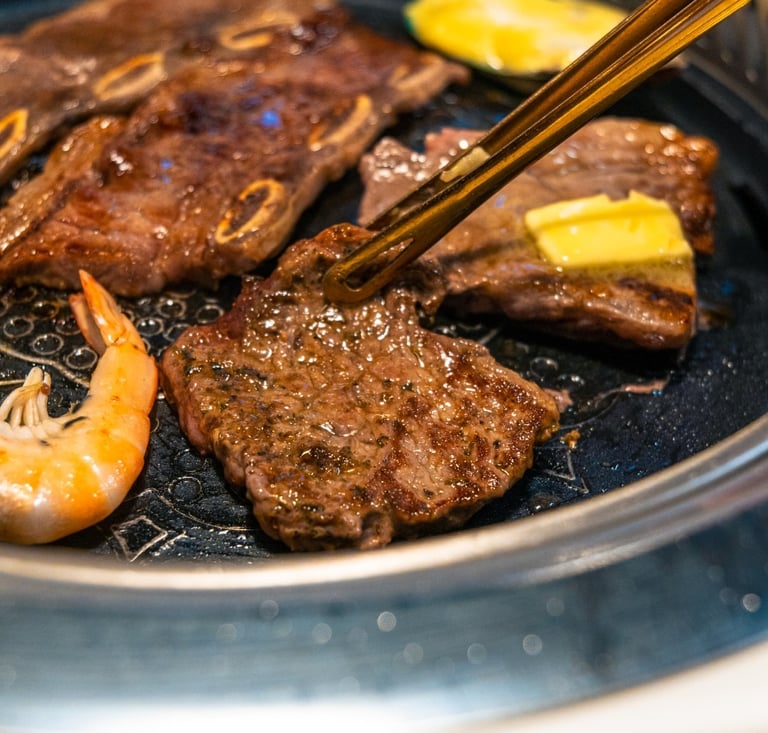 Korean BBQ is a popular and engaging way to enjoy grilled meats and vegetables, cooked right at your table. Here's how it works: Choose from our extensive menu of premium meats, including beef, pork, chicken, and a variety of fresh vegetables. Our tables are equipped with built-in grills, allowing you to cook your selections to your preferred level of doneness. Watch as the meats sizzle and the aromas fill the air. Enjoy a variety of marinades and seasonings that enhance the natural flavors of the meats. You can also create custom flavor profiles with our selection of sauces. Traditionally, Korean BBQ is enjoyed with lettuce wraps, kimchi, and other side dishes, adding a refreshing crunch and additional flavors to your meal